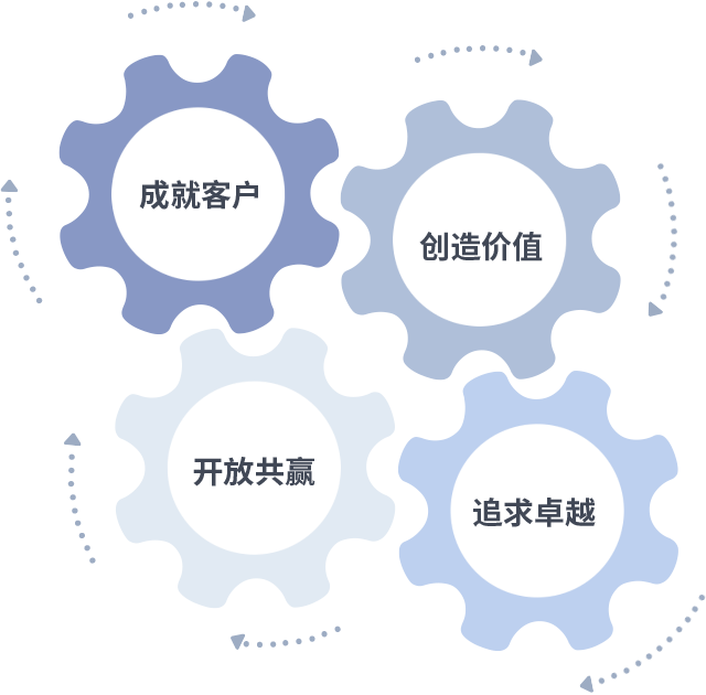 成就客户是一切决策的出发点,创造价值是衡量所有工作的标准,追求卓越是大丰国际做事做人的态度,开放共赢是大丰国际的格局也是最终的结果。价值观的齿轮环环相扣,推动着组织里的每个人不断向前。
